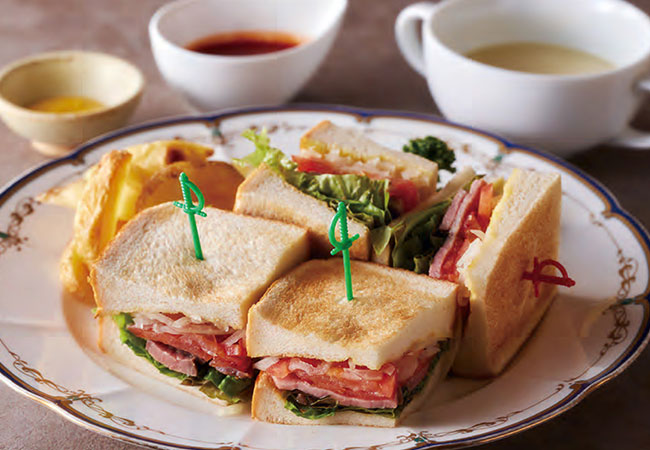 あやめ亭は、「箱根・富士屋ホテルのシェフ」が旬の食材を使用し、毎月新メニューをご提供しています。朝食からランチ、プレー後のティータイム、パーティーまで、お気軽にご利用ください。お席はレストランホールにつながるラウンジやテラス席もご利用いただけます。