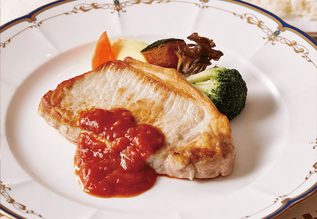 あやめ亭は、「箱根・富士屋ホテルのシェフ」が旬の食材を使用し、毎月新メニューをご提供しています。朝食からランチ、プレー後のティータイム、パーティーまで、お気軽にご利用ください。お席はレストランホールにつながるラウンジもご利用いただけます。